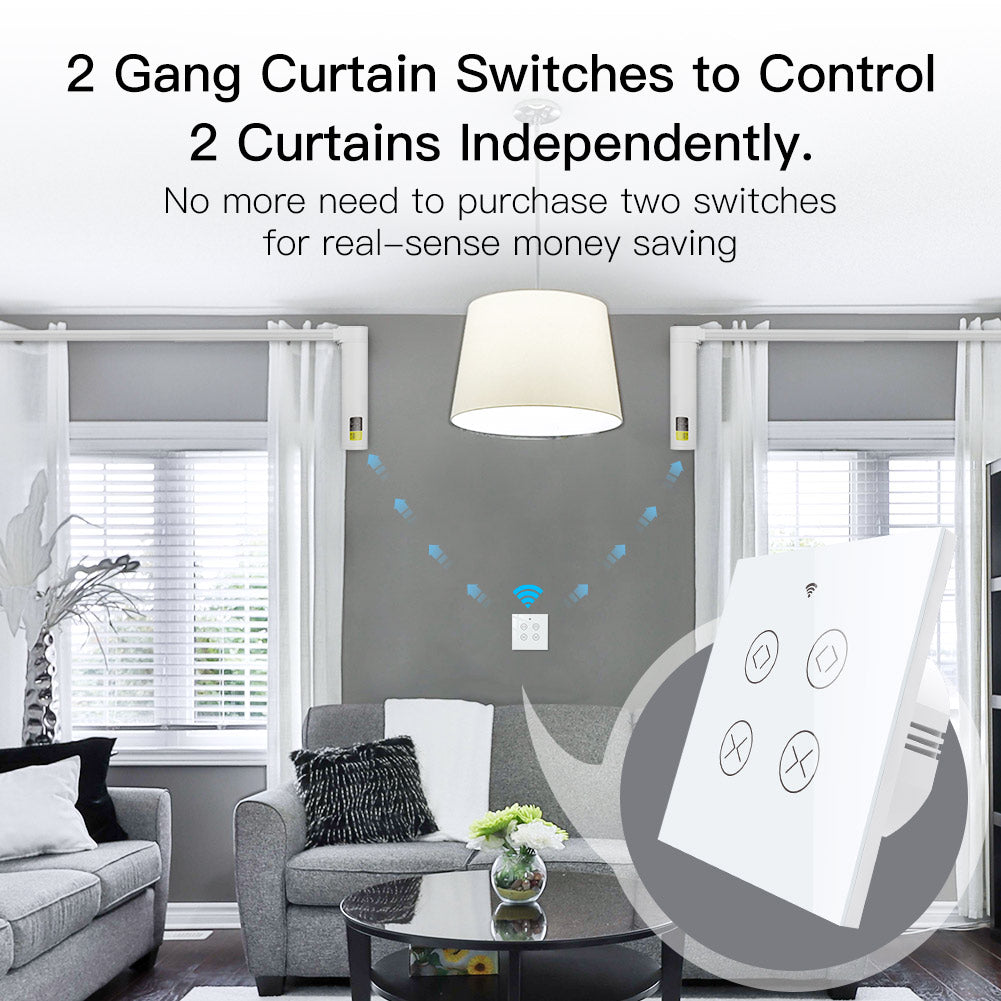 WiFi RF433 Smart 2 Gang Double Curtain Blind Touch Switch Single Pole Neutral Wire Required EU Version