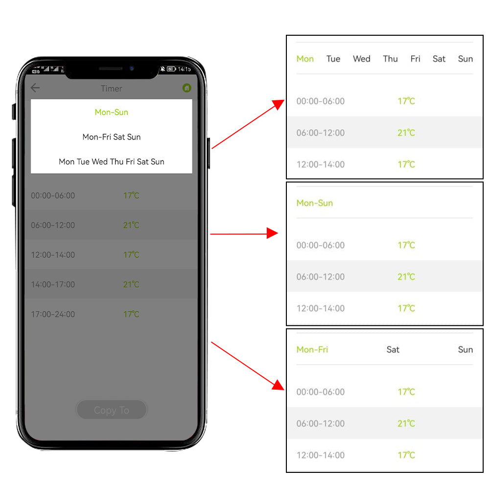 4.Programmable Schedule with Weekly Programming Selection:Supports manual set up 5+2, 7 days weekly schedule with 5 periods for option ,providing you with the maximum convenience for different situation and setting customized schedule for your house temperature.Holiday mode,automatic mode, and manual mode available for added convenience;Window open detection and offset temperature are both featured for this TRV controller for added convenience.